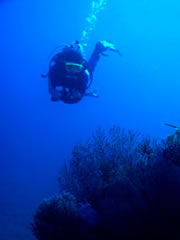より深い水中で発見できる海の未知なる神秘の世界 水面を通して海中にまで降りそそぐ陽光。しかし、潜る深度が増すほど、その光は失われてゆく。そんなディープ・ダイビングには、まったく別の世界に出会える魅力がある。自然光にかわるブルーの世界、水深30mの海底に沈む沈船。ウミトサカにキンギョハナダイが舞う華麗な光景。美しいハゼの仲間が生息する姿…。 そこには水深18mを超える海中でしか見ることのできない幻想的な世界が広 がり、エキサイティングなポイントも数多く点在している。 もちろんダイバーにとって、深く潜れることはダイビングスキルの優越とイコ ールではなく、むしろ誤って深く潜ってしまった場合、正しい方法で対処できることのほうがより上級のダイビングスキルを身につけていることの証しとなる。 それゆえこのコースでは、ディープの魅力といつも背中合わせにあるさまざまな注意点はもちろん、水深18m以深の水中環境を知り、より安全にディープ・ダイビングが楽しめるような知識を習得することが第一の目的となる。潜る深度と時間を決める潜水計画の立て方、減圧理論の学習、そして水圧のかかる様子の観察のほか、安全停止や浮上方法もシッカリ習う。 こうしてディープ・ダイビングをマスターすれば、世界中にあるレックやケー ブポイントをはじめ、ワクワクするようなアドベンチャラスなポイントへも、安全にチャレンジすることが可能になるのだ。 |