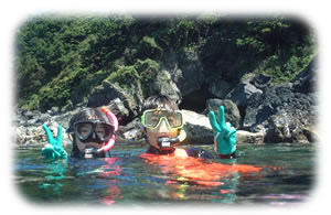 楽しく、気軽に水中の 世界を体験できるプログラムです。 ★ 水着・タオル・ビーチサンダルをお持ちください。 ★ マスクの使い方や水中での呼吸の仕方などを教わったら、 インストラクターと一緒に海へ入って見ましょう。 海の中で息が出来ると言うだけでも楽しい体験となるでしょう。 思っていたより沢山の魚に出会えることにもびっくりする かも知れません。 ※18歳未満の方は保護者方の承諾が必要です。 |